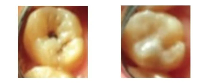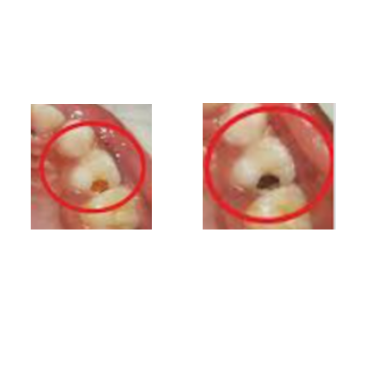 SDF is a clear liquid that kills the decay causing bacteria. SDF will turn the cavity from brown to black showing that it has stopped the bacterial infection. SDF is placed on back teeth only.