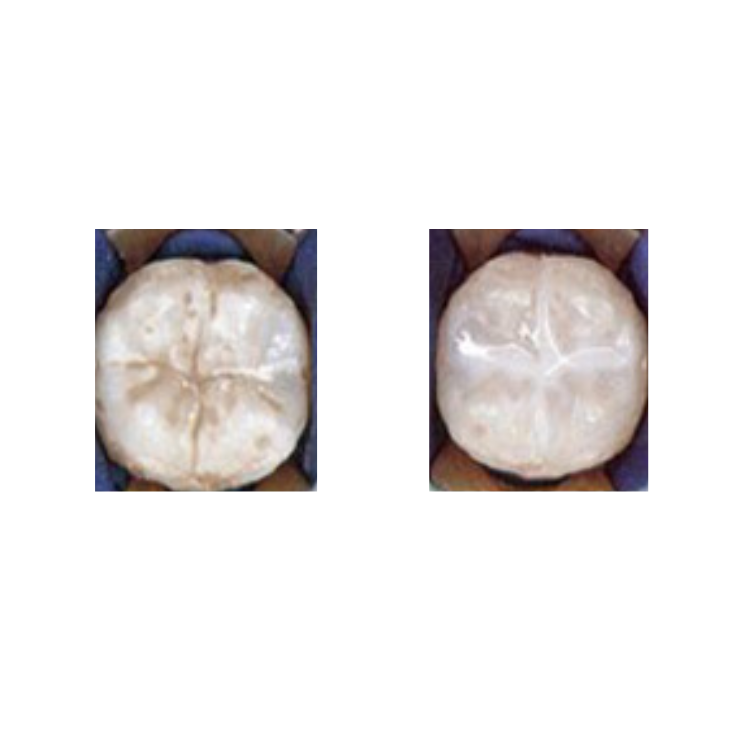 Sealants are thin, white cement coatings. They seal off the grooves and dips on the top of the teeth. This keeps bacteria and food from getting caught in them and causing cavities. The sealant is placed on top of the tooth.